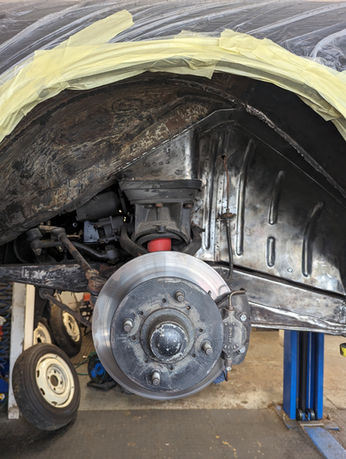 Any deeper rust spots are then rectified by a mixture of wire brush or media blasting techniques ensuring all under body rust is removed
